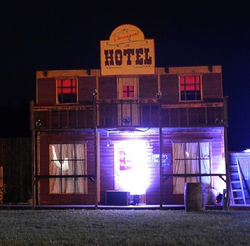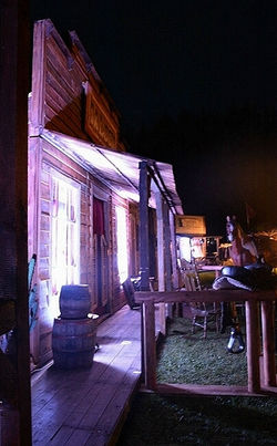 "Cantina & Coffee House" Cateringkulissen offen - 2 massive Holzfassaden im Wild West Stil,